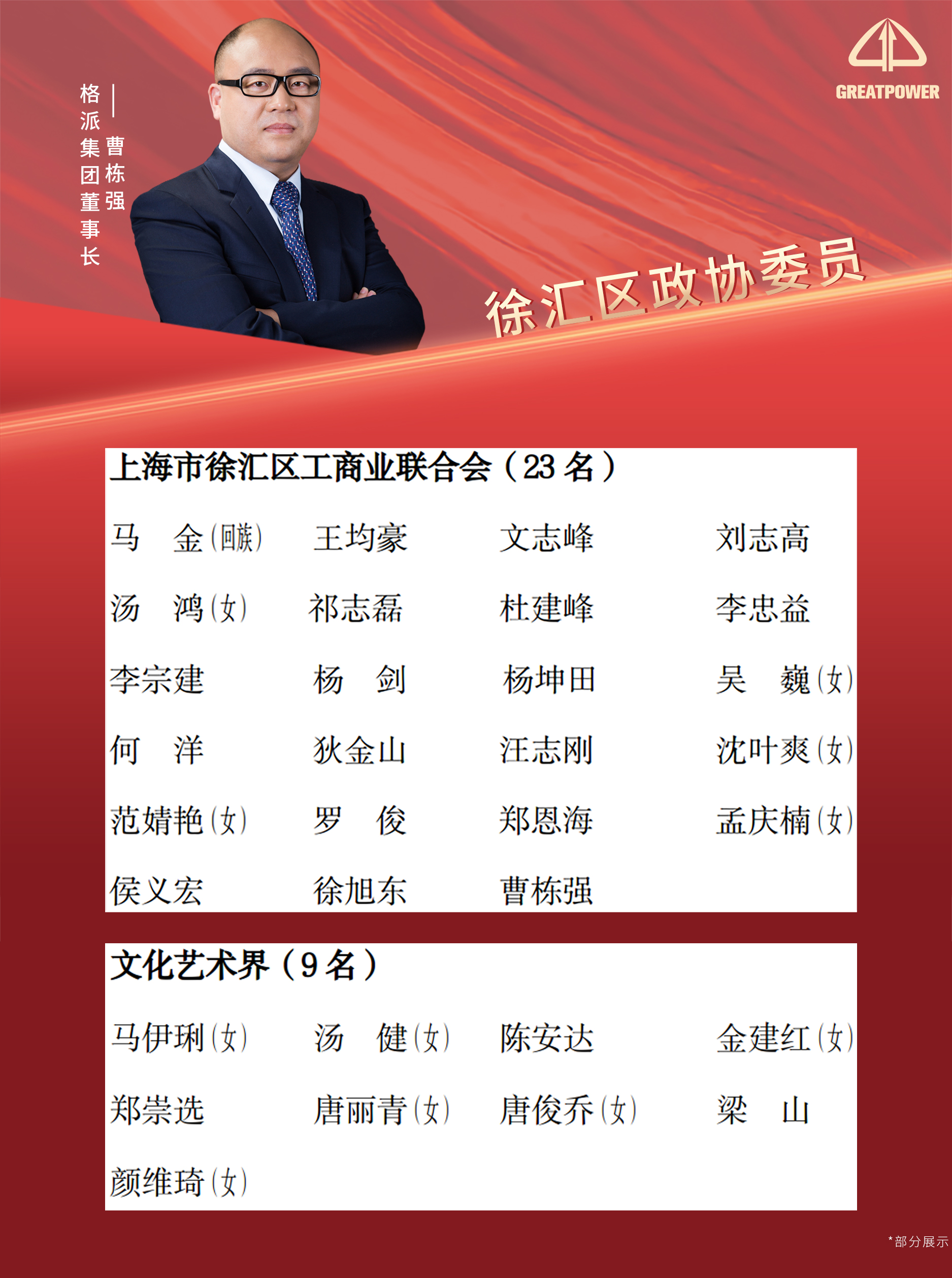 2021年12月8日,經上海市徐彙區政協十四屆二十九次常委會會議通過,第十五屆徐彙區政協委員名單正式公布,格派集團董事長曹棟強先生當選徐彙區政協委員。