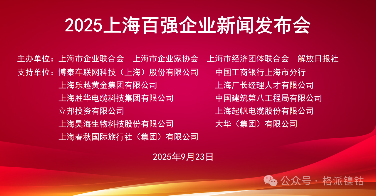 2025年9月23日,由中國金融信息中心會議廳舉辦的“2025上海百強企業新聞發布會”順利召開。本次發布會由上海市企業聯合會、上海市企業家協會、上海市經濟團體聯合會與解放日報社聯合主辦。上海企業聯合會、上海市企業家協會會長劉家平主持會議,多家主流媒體及百強企業代表共同參與。